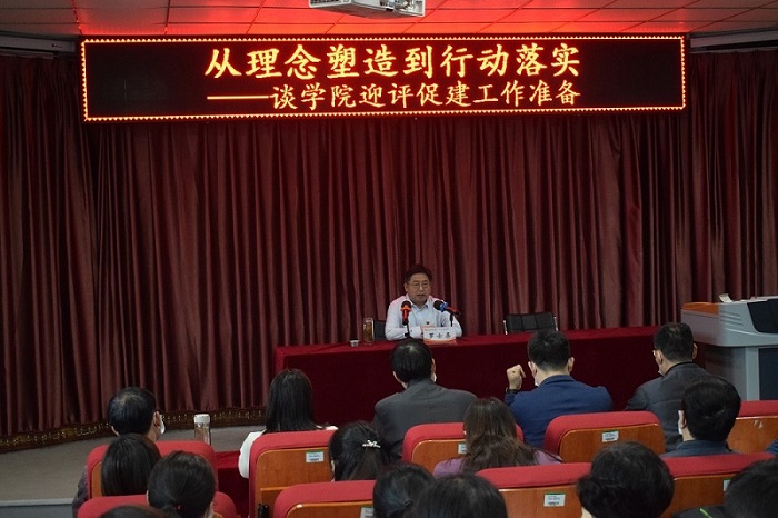 报告中,罗校长强调,全体教师要坚定理念,热爱职业、热爱学生、热爱学校,以饱满的热情和朝气迎接学校本科教学工作合格评估,推动教学、学风建设等各项工作再上新台阶;要立足岗位,认真学习评估指标体系,将7个一级指标、20个二级指标、39个观测点学深悟透,内化于心,外化于行;要回归本位,对标对表,真做真干真研究,对照问题,真抓真改真落实;要以学生为中心,促进学生全面发展,共同实现专业人才培养目标;要明确办学定位,理清思路,总结成绩,凝练学院特色,突出专业优势。