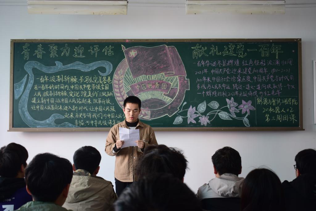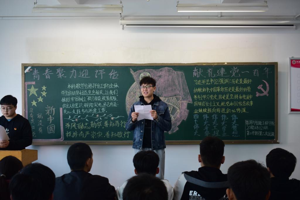 活动伊始,各班主持人带领大家回顾过往百年,无论是为民族争取自由与独立,还是为国家谋发展、为民族谋复兴、为人民谋幸福,亦或是本次疫情下党的精准施策、有效防控,都展现了中国共产党在国家发展的历程中所起到的无可比拟的作用。随后,由各团支部带来精彩的团课节目:20机器人02班的刘自阳、张俊才带来的主题演讲《青春聚力迎评,献礼建党一百年》,向我们讲述党的光辉世纪,帮助同学们清晰认识到了我党百年的光辉发展历程。最后,主持人强调今年是建党一百周年,也是我校本科教学评估的一年,迎建促评对于学校及师生的意义重大,希望同学们树立责任意识、大局意识,学生干部做好良好表率,增强校荣我荣的使命感。