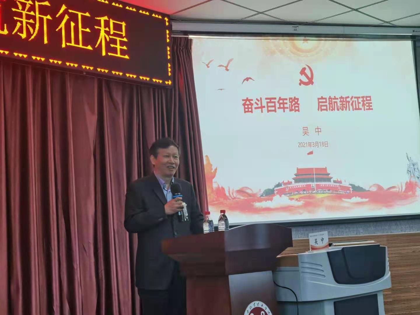 3月18日下午,副校长吴中教授以《奋斗百年路 启航新征程》为题在北林校区A200教室为太阳集团tyc234cc师生讲授开学思政第一课。太阳集团tyc234cc党政领导、教师代表和部分学生聆听了思政课。思政课由太阳集团tyc234cc党委书记周凯主持。