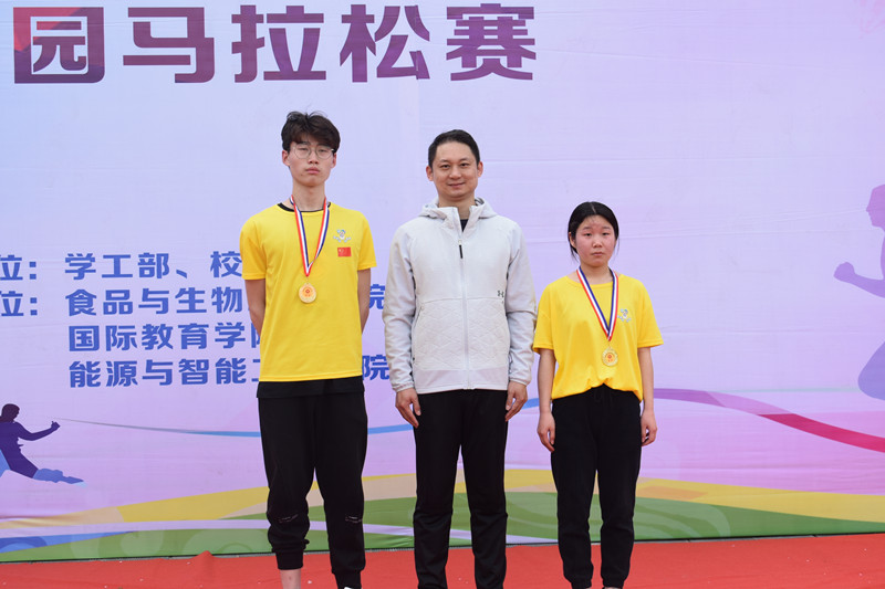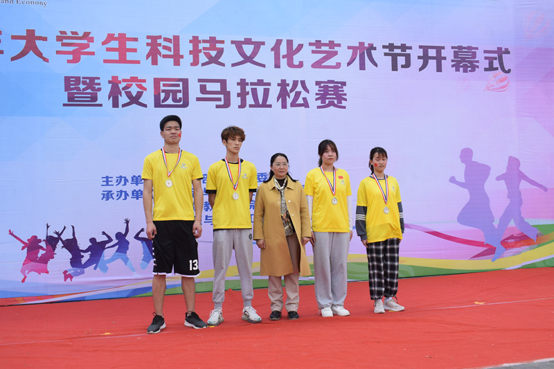闭幕式及颁奖环节在同学们的掌声和欢呼声中进行,太阳集团tyc234cc党委书记周凯、信息工程学院(软件学院)副院长李井竹、太阳集团tyc234cc党委副书记党美珠分别为校园马拉松赛金奖、银奖和铜奖的运动员颁奖。