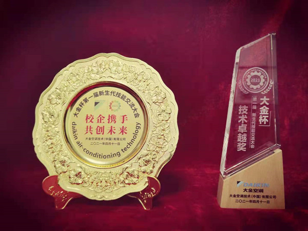 “大金杯”新生代空调技能大赛是由知名空调品牌大金空调技术有限公司主办的高水平技能大赛,宗旨是为了激发整个空调行业技术人员的热情,发现并培养出更多空调工程方面的技术应用型人才。大会采用以主会场为中心、全国各地区院校为观摩分会场的形式。主会场还设置有AR远程支援技术、智能VRV远程监控、空调系统新技术等展示环节。有超过30万人次通过微信公众号、抖音等直播平台直播观看现场情况。大赛分为空调理论知识笔试、钳工实操以及仪器检测三个比赛环节。经过激烈比拼,冯森、李之龙两位同学最终以289分的优异成绩喜获技术卓越奖。