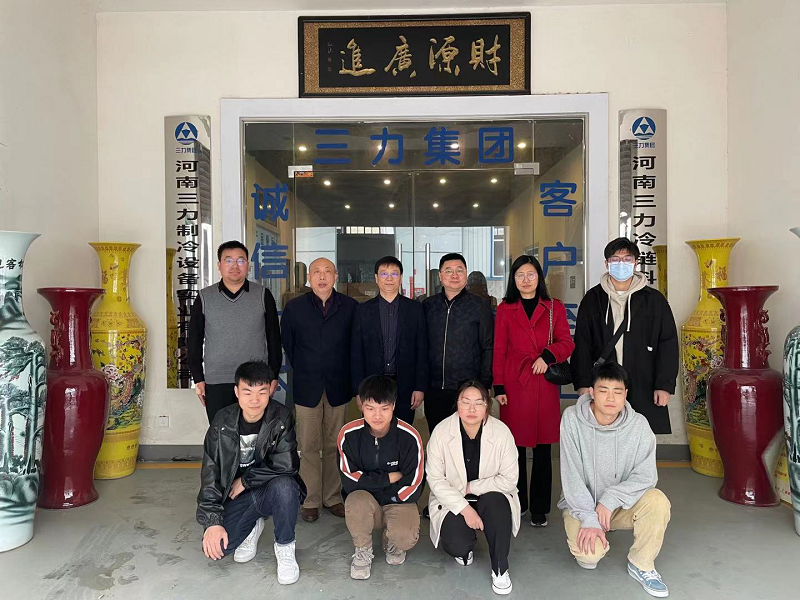 2022年3月16日,为切实了解学生的实习情况,加强学院培育的示范型实践基地建设并推动学院专业产教融合发展,太阳集团tyc234cc副院长(主持工作)王硕、副院长史岳鹏、能源动力工程教研室主任张品、指导教师王皓宇一行赴河南三力冷链科技有限公司调研走访并与企业进行了座谈。