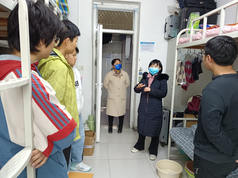 在宿舍走访过程中,学院党委副书记党美珠首先向学生们传达了学院领导班子对同学们的关怀,详细了解同学们的学习、生活等情况,勉励大家珍惜大学时光,树立目标,做好人生规划,为梦想而脚踏实地奋斗;向同学们传达疫情防控相关要求,细心询问学生们当前所遇到的困难,鼓励大家主动联系任课老师请教,确保线上学习质量。针对近日气温下降,党书记嘱咐全体辅导员老师提醒学生及时增添衣服,关心关爱帮扶有困难的学生。带班辅导员老师逐一走访各自班级宿舍,进行宿舍安全隐患排查,提醒同学们注意用电安全和春季防火。