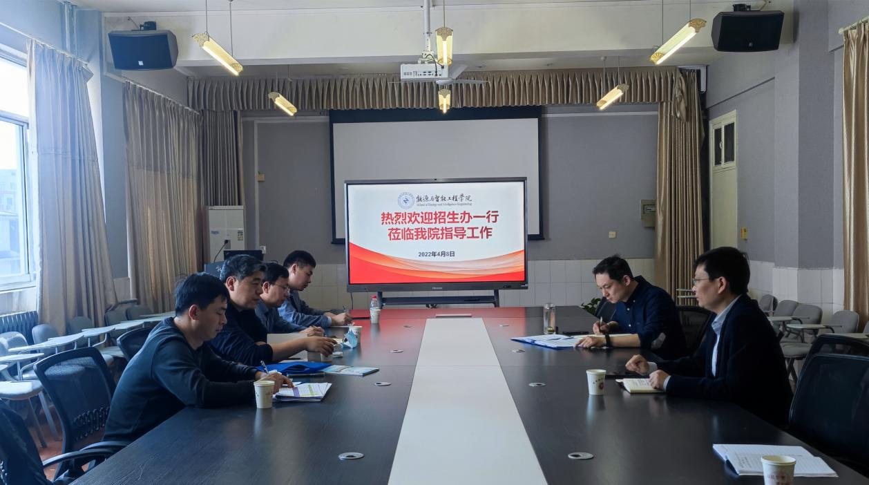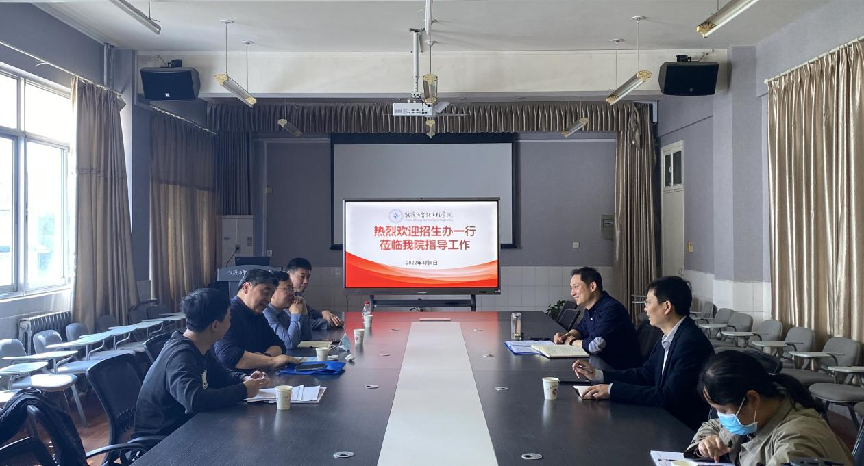 为加强学院联系、进一步做好2022年招生宣传工作,4月8日下午,我校招生办公室主任席波、副主任杨颖辉、招生科长刘博、信息科科长裴广祥一行深入我院进行工作指导和座谈交流。座谈会在实验楼3401太阳集团tyc234cc会议室召开,院党委书记周凯、副院长王硕(主持工作)出席会议,招生专员黄润芸参会。