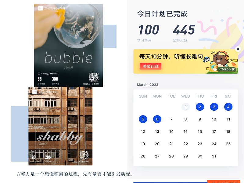 本次活动将于3月10日结束,为期一个月。本次活动不仅营造了积极的学习氛围,也提高了同学们四六级复习的效率。青春奋进正当时,不负韶华争朝夕,相信同学们能够利用从活动中积累的经验和掌握的学习方法为今后的成长打下坚实的基础,争当走在时代前列的新青年。(图/文 朱冷雪)