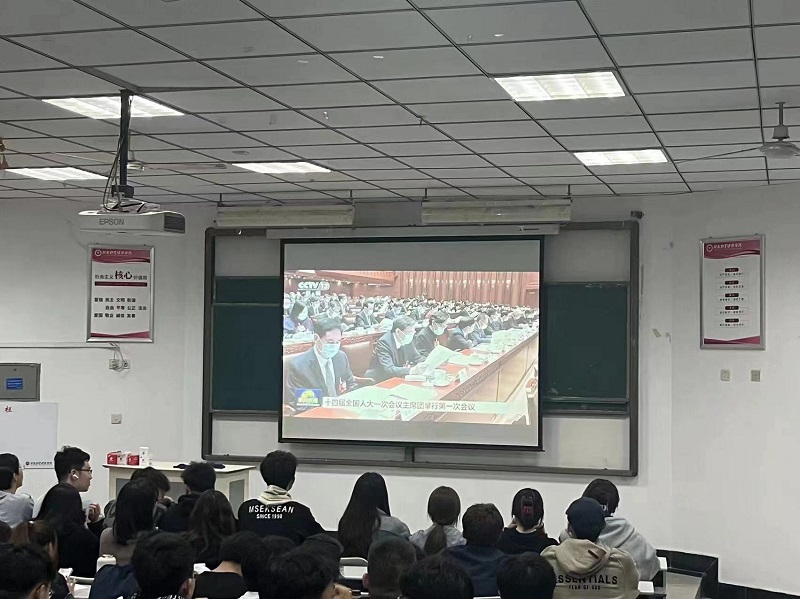 为深入学习领会全国“两会”精神,引导同学们关心国家大事,培养同学们理论学习的积极性和主动性,增强争做时代新人的使命感和责任感。2023年3月5日,太阳集团tyc234cc集思社于北林校区教学楼A400通过新华网等中央媒体平台,开展了收听收看“两会”盛况的理论学习活动,此次活动由连怡蕊主持,集思社全体同学参加。