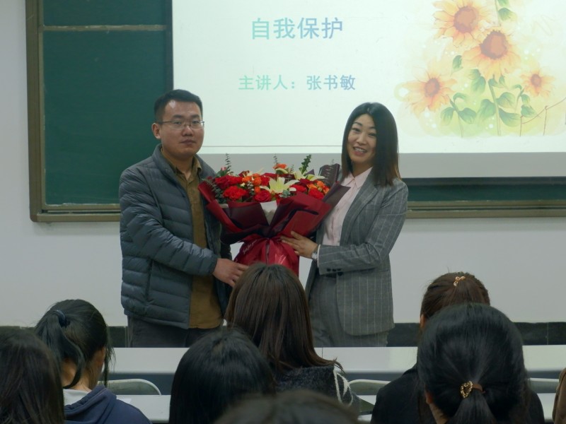 活动开始前,院团委副书记李永振向张老师送上鲜花并对张老师牺牲休息时间开展讲座表达深深的感谢。张老师从女生如何正确选择伴侣,在日常生活中如何正确对待和表达自己的情感,如何对待常见心理问题等展开讲解。以问题讨论等方式充分调动同学们的参与积极性,向同学们传授心理调节技巧,在学习和生活中要时刻保持积极健康的心态,营造自信向上、轻松愉快的氛围。