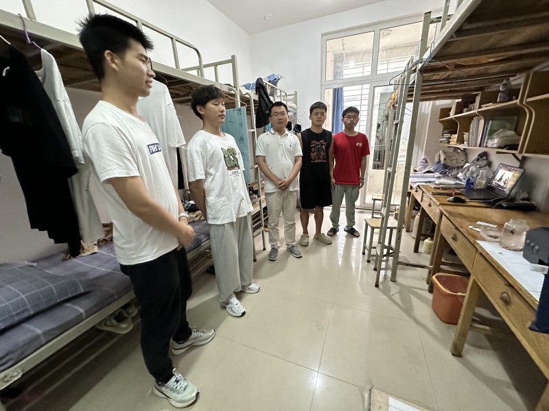 在走访宿舍过程中,王院长、党书记同暑期留校同学亲切交谈,了解同学们升学备考情况,询问同学们学习生活上是否存在困难,对同学们刻苦学习、努力读研深造的进取精神给予肯定,提醒同学们要严格遵守暑期学生留校管理相关规定,做好高温天气防暑和防范强对流天气,遇到困难及时上报老师,安心复习,科学备考,祝福同学们考研上岸。同学们对学院领导、辅导员老师的到来表示热烈欢迎,积极汇报了学习生活上的情况,对学院给予的关怀和关心表示深深感谢,同学们纷纷表示一定要再接再厉,努力实现读研梦想,为学院争光。