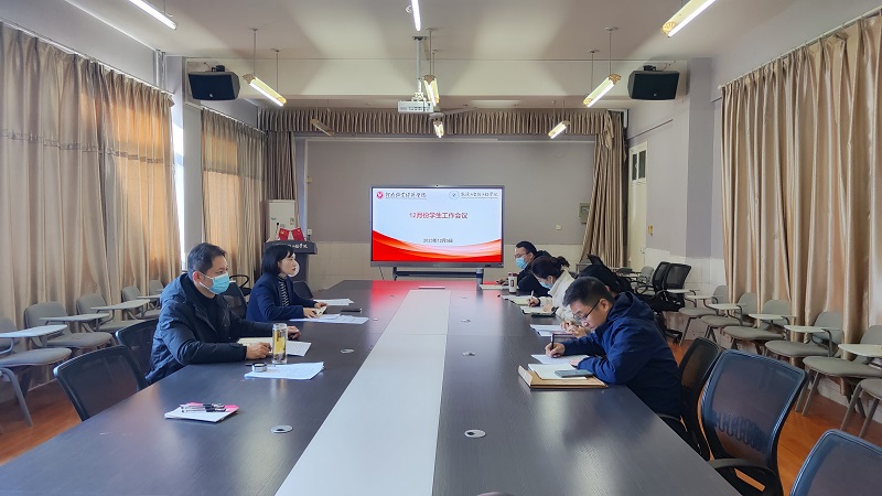 院党委副书记党美珠传达了学校十二月份学生工作会议精神,并对“一站式”学生社区建设、完善楼层长工作机制和楼层长常态化深入学生社区履职尽责,及时有效解决学生思想、学习、生活、发展等实际问题进行详细的安排和部署。各辅导员老师分别就近期工作进行了汇报。