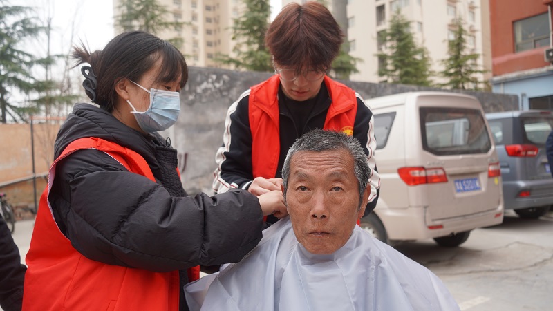 当天下午,我院志愿者同学们早早地来到了惠济颐和敬老院,做好活动的准备。我院志愿者受到了敬老院工作人员和老年朋友们的热烈欢迎。在活动开始之前,负责同学向志愿者们强调了活动的注意事项,希望大家能够用心去关爱每一位老年朋友,给他们带来快乐和温暖。活动开始后,志愿者们分成几个小组,耐心听取老人们的需求,为其“私人订制”出适合的发型。他们一边与老人们拉家常,一边巧手翻飞。利用简单的场地、单一的工具、朴实的手法,“剪”出了老人们的笑容,“剪”出了志愿者们对老年人的关爱,“剪”出了青年学子尊老爱幼、欢乐和谐的气氛。经过志愿者们的一番精修细剪,老人们原本有些凌乱、斑白的头发都变得十分干净利落。看到焕然一新的发型,他们的脸上露出了满意的笑容。大家纷纷表示感谢:“每次去理发店理发太麻烦太费劲,这次学生们的志愿劳动把服务送到我们身边,真是太方便了!”