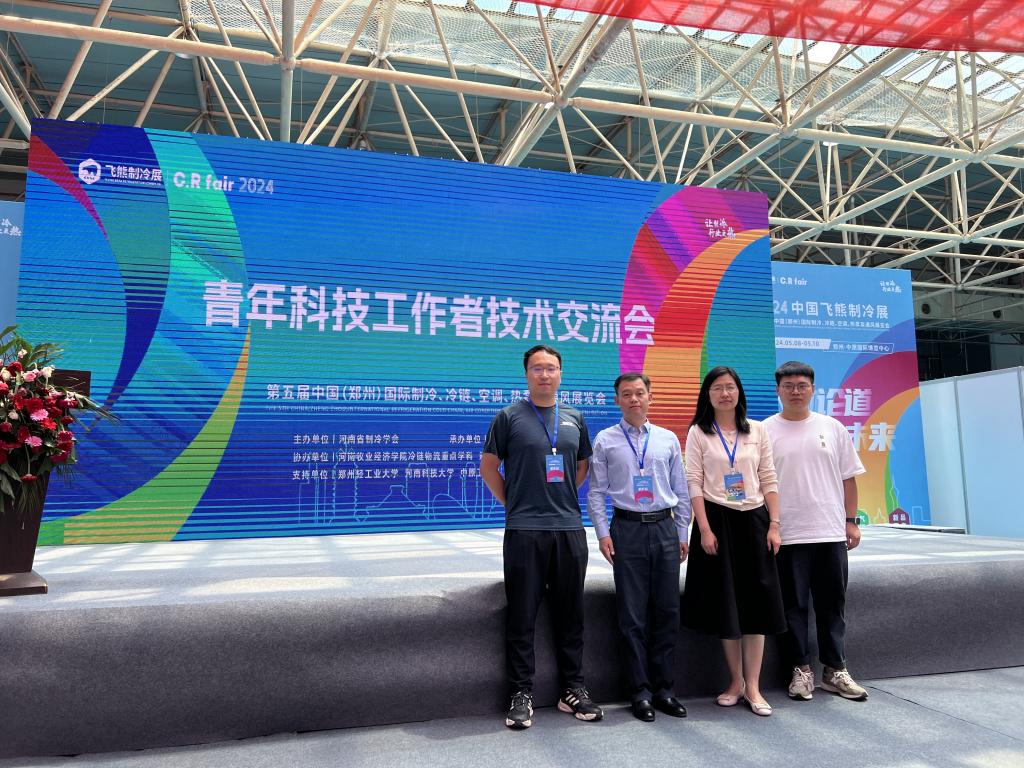 2024年5月9日上午,第五届中国(郑州)国际制冷、冷链、空调、热泵及通风展览会—青年科技工作者技术交流会在郑州中原国际博览中心召开, 太阳集团tyc234cc副院长刘群生受邀主持会议,能源与动力工程专业教研室主任张品,教师刘丹、王珂、高萌以及能动专业学生参加了会议。来自郑州大学、郑州轻工业大学、河南科技大学、河南理工大学、中原工学院等多位业内专家学者,从青年教师如何做科研、技术创新、应用转化等方面带来了精彩的主题演讲。