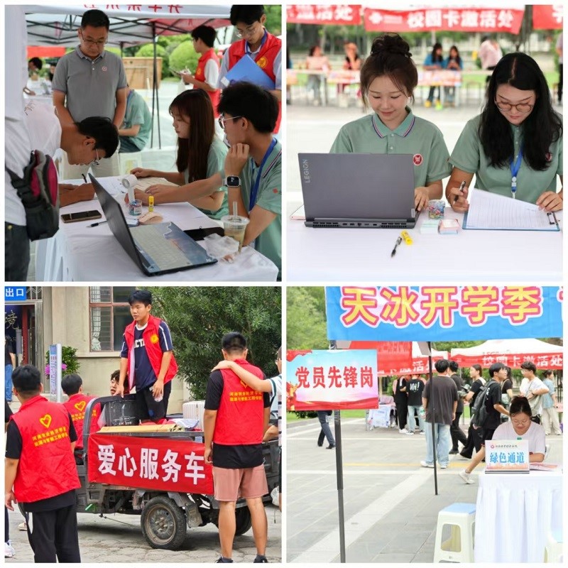 为迎接2024级新生,学院优秀校友、天冰冷饮有限公司总经理张海波热心捐赠,学院联合天冰冷饮有限公司共同制作的联名款“迎新冰淇淋”,让新生感受到学院送来的丝丝温馨凉意。迎新现场还展出了全国、河南省机器人大赛和挑战杯河南省赛获奖作品,让同学们一入校园就感受到专业的魅力!用572名新生姓名汇聚成的主题签名墙前,同学们纷纷打卡留念,书写下对大学生活的目标、畅想。
