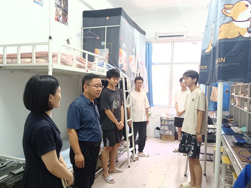 在宿舍走访过程中,赵贺然详细了解同学们近期学习、生活、工作等情况,提醒同学们近期气温较高,既要注意防暑又要注意防范强对流天气,遇到困难要第一时间联系辅导员老师,叮嘱同学们加强安全意识,杜绝使用大功率违规电器,努力营造安全、整洁、舒适、温馨的学习生活环境。本学期即将进入复习考试阶段,赵贺然勉励同学们要及时投入复习,查漏补缺,科学备考,诚信应试,考出优异的成绩。