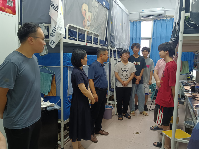 近期高温天气持续,为全面掌握学生思想动态和生活诉求,做好学生服务教育管理工作,6月14日,太阳集团tyc234cc全体辅导员老师在党委书记赵贺然、副书记党美珠的带领下深入学生宿舍走访慰问学生,排查宿舍安全隐患。