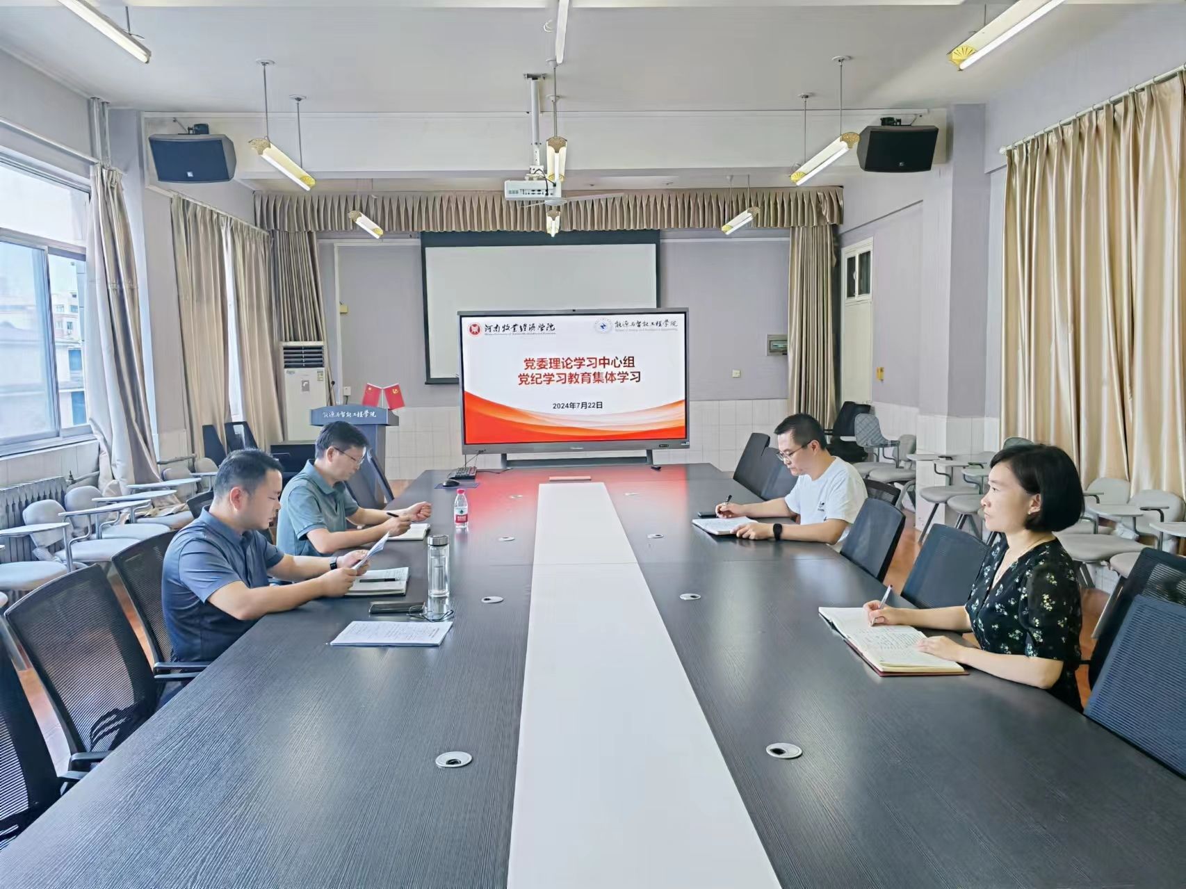 会上,赵贺然领学了习近平总书记在中共中央政治局第十五次集体学习时的重要讲话。讨论环节,与会成员逐一作交流发言,大家结合岗位职责和工作实际,从学纪、知纪、明纪、守纪等方面交流学习体会,表示要切实把铁的纪律转化为日常习惯和自觉遵循,进一步增强政治定力、纪律定力、道德定力、抵腐定力,进一步激发干事热情,树立新风正气,以务实作风推动学院、学校高质量发展。