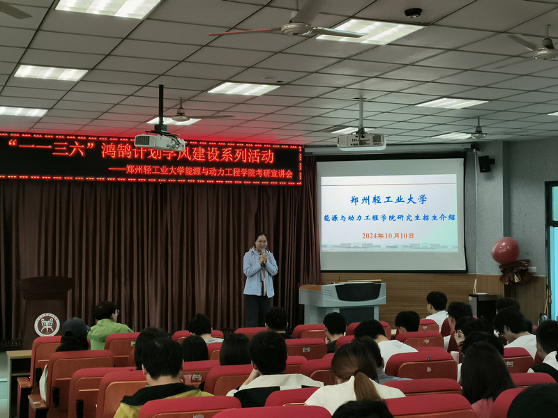 宣讲会过程中,郑州轻工业大学能源与动力工程学院王霄老师认真介绍了学院的基本情况包括师资力量、科研平台、培养方案和近年取得的教学科研成果;副院长金听祥则就同学们关心的学院2025年研究生招生政策、初试科目和复试要求等问题进行了详细解答,现场气氛热烈,互动频繁。