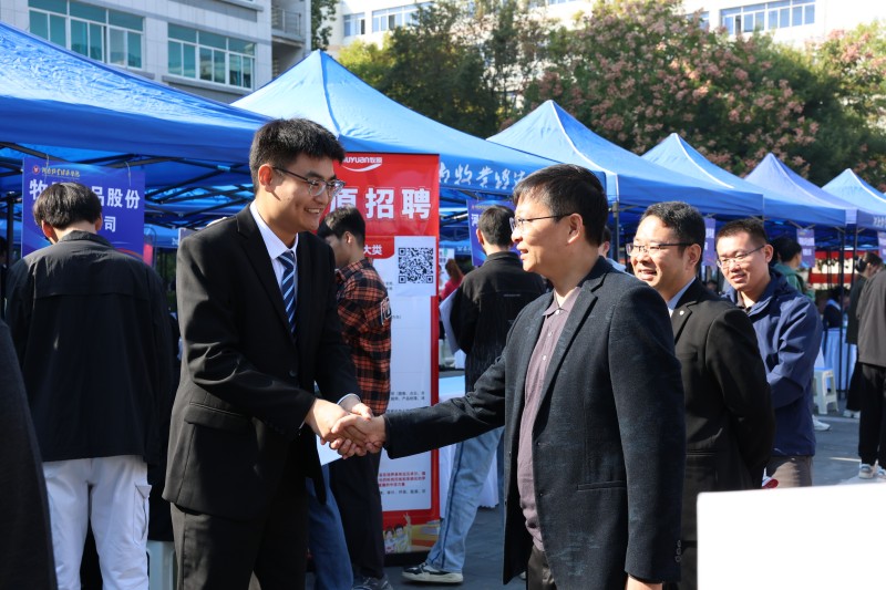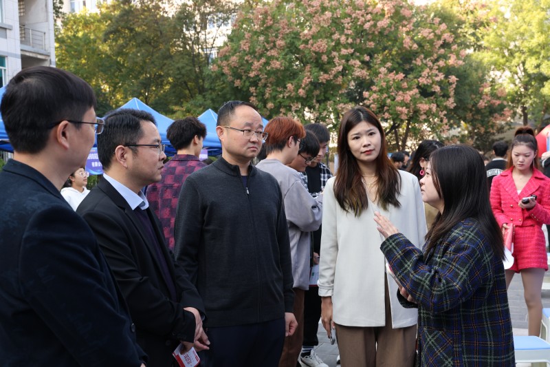 邱荣超及学院领导来到招聘会现场与用人单位亲切交谈,对参会企业来我校招聘人才表示热烈欢迎,并详细了解企业人才需求、招聘专业和岗位设置,认真听取用人单位对人才培养的意见和建议。在