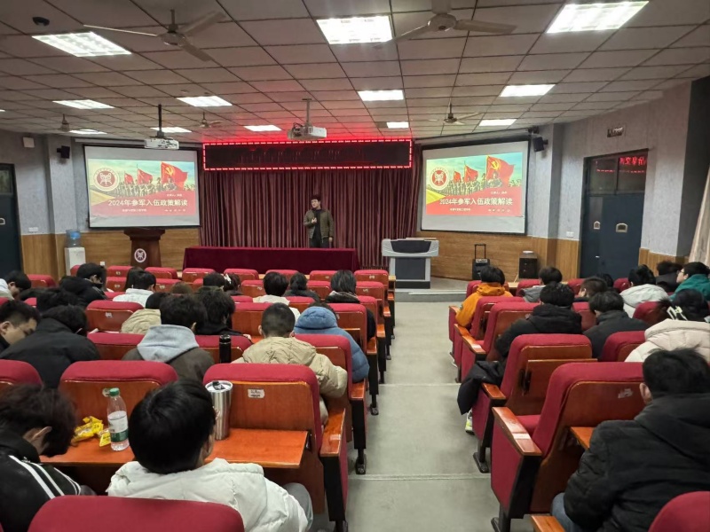 为积极做好2025年征兵工作,使学生们对征兵信息和政策进行全面了解,切实提高青年大学生应征入伍的知晓率和积极性,鼓励青年大学生响应国家号召,积极报名参军,献身国防事业,太阳集团tyc234cc于12月19日晚在A200开展征兵政策宣讲会,宣讲会由国防专员孙昊主讲。