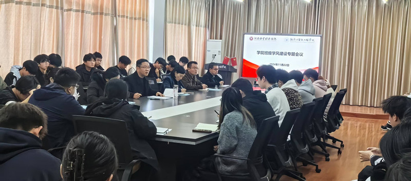 赵贺然对学院学风建设工作提出三点要求:一是明确纪律考勤的重要性,严管与厚爱相结合,培养学生良好的纪律意识,严格规范课堂考勤;二是学生干部要以身作则,率先垂范,引领学生自我管理、自我教育、自我服务,共同营造公平有序的良好氛围;三是厚植以班级为家、以校为家的情怀,遵守课堂纪律,确保课堂井然有序。赵贺然就学生干部如何做好考勤工作提出四点建议:一是提高思想认识,明晰工作职责,考勤工作要做到心中有数、手中有策;二是加强宣传,营造气氛,将优良学风与学生成长成才之间的必然性联系起来,宣传先进典型,教育引导学生博学笃思、立志成才;三是创新方法,提高效率,运用好信息技术手段,确保考勤工作更加高效;四是加强协作,形成合力,考勤班长、任课教师、带班辅导员、学生工作领导小组要齐抓共管、同向发力,确保育人效果。