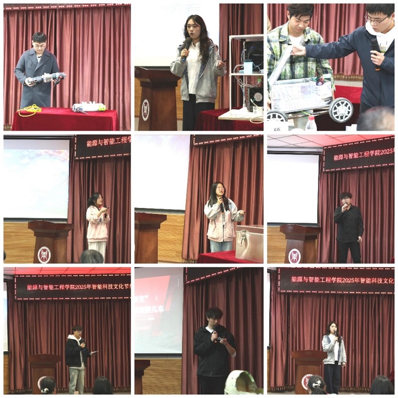 北林校区教学楼A200化身为创新与智慧的舞台!参与展示的16个科技发明项目激烈角逐,100余名学子现场加油助威,现场氛围直接拉满!参赛项目既有“慧禽云养——沉浸式数智养殖交互学习系统”等体现学校牧工商一体化办学特色的科技作品,又有“VisionChat-智能陪伴导盲杖”等关注特殊群体、改善生活品质的暖心发明,还有“深蓝之眼——水下多功能探测机器人”等聚焦国家战略需求,展示创新硬实力的智能科技作品。在汇报展示环节,各参赛选手通过精心准备的PPT演示、实物模型展示以及生动形象的视频动画等多种形式,全面而深入地呈现了各自项目的核心内容与创新亮点。评委专家组从项目可行性、创新性、科学性和先进性等多个维度,对参赛项目进行了严谨细致的评审,提出了专业中肯的指导建议。选手们扎实的专业功底、严谨的学术态度以及勇于创新的精神风貌,充分展现了我院学子追求卓越、开拓进取的优良品质。