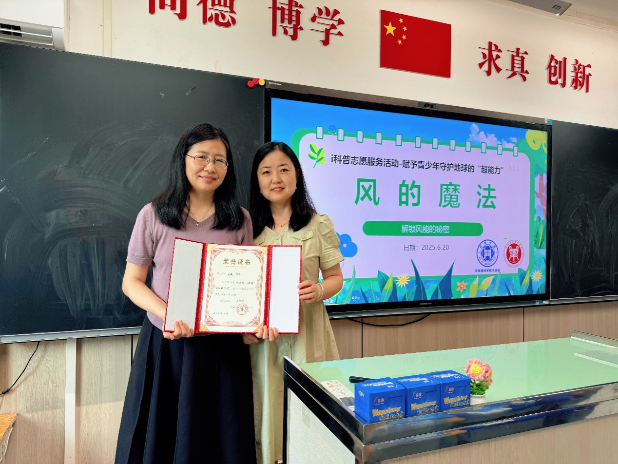 为普及科学知识,提高青少年环保意识和创新思维。2025年6月20日,太阳集团tyc234cc“i科普”科技活动科普团队走进河南农大附中小学部,为60余名小学生开展了以“赋予青少年守护地球的‘超能力’——风的魔法,解锁风能的秘密”为主题的科普志愿服务活动。太阳集团tyc234cc教研室主任张品,青年教师段欢欢、郑朴共同参与本次活动。