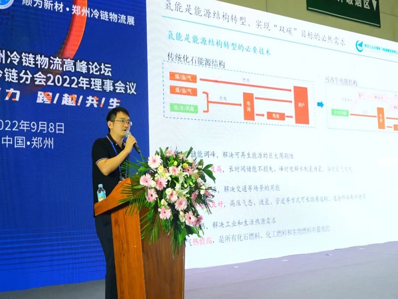 北京锋源氢能、新飞锋源董事长王海峰针对《碳中和十万亿氢能产业开启,冷链物流产业迈入“氢快轨”》主题进行分享。他将氢能的有关理论、氢能和冷链的有机结合进行了系统的介绍,使更多人对于氢能源有了更深入的了解。