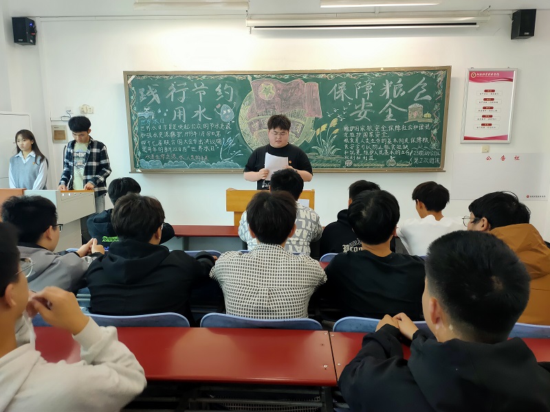 团课开始,各班团支书播放教育短片,教育广大团员青年要树牢危机意识,做爱粮之人。粮食安全是关系国家发展、社会稳定、百姓幸福的首要因素,节约粮食、反对浪费是中华民族的传统美德,也是每位同学们应该遵守的行为准则。作为新时代的青年,我们要坚持按需点餐,“少量多次”取餐,践行“光盘行动”,告别餐饮“剩宴”,养成健康文明的生活方式,树牢“浪费可耻、节约光荣”的爱粮意识。紧接着,同学们积极参与,并针对“节约”这个话题,从“为什么”“怎么做”等方面讲述了个人看法。最后,主持人对此次内容进行了总结,呼吁同学们从小事做起,从点滴做起,增强节约意识,坚持做到不浪费,让节约成为我们日常遵守的习惯。同时,让同学之间互相监督、互相鼓励,在班级里形成勤俭节约的良好氛围。