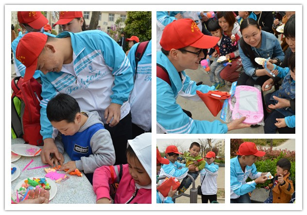 下午三点在星星儿童村,志愿者们将提前准备好的温暖礼物送给了孩子们,同学们精心设计的淡蓝色奶油蛋糕上面点缀着小“星星”,还有“祝‘星星们’健康快乐!”的祝福语。送到小朋友们手里还有志愿者们为星星们精心挑选购买的航模、拼图、画板、彩笔等文具。在场的所有爱心人士共同为孩子们祝福、祈祷,希望这些特殊的孩子们早日康复,快乐成长!