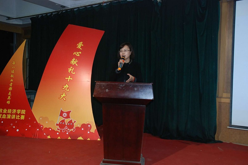 张淑琴科长代表河南省红十字血液中心对王百姓同志加入无偿献血事业表示由衷的敬意与感谢,对参与无偿献血工作的领导、老师和学生表示衷心的感谢,对获奖者表示热烈的祝贺。她说,贵校无偿献血协会大力开展献血、帮扶等公益活动,取得了良好的效果,对推动我省高校无偿献血工作、保障郑州医用供血做出了不可磨灭的贡献。她用真实的数据告知同学们,当前我省临床用血及血库面临持续血慌的严峻形势,用无偿献血的无上光荣和无偿献血事业的重大意义号召同学们积极参与并带动更多的青年学生参与到无偿献血公益事业。