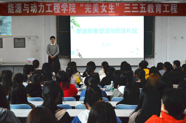 为进一步推进校园精神文明建设,提升我院女大学生的综合素质,3月22日,能源与动力工程学院特邀请高级礼仪师、高级形象管理师王建华教授为我院全体女生做了“职业形象塑造与职场礼仪”专题讲座。