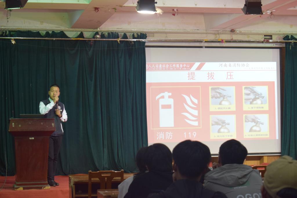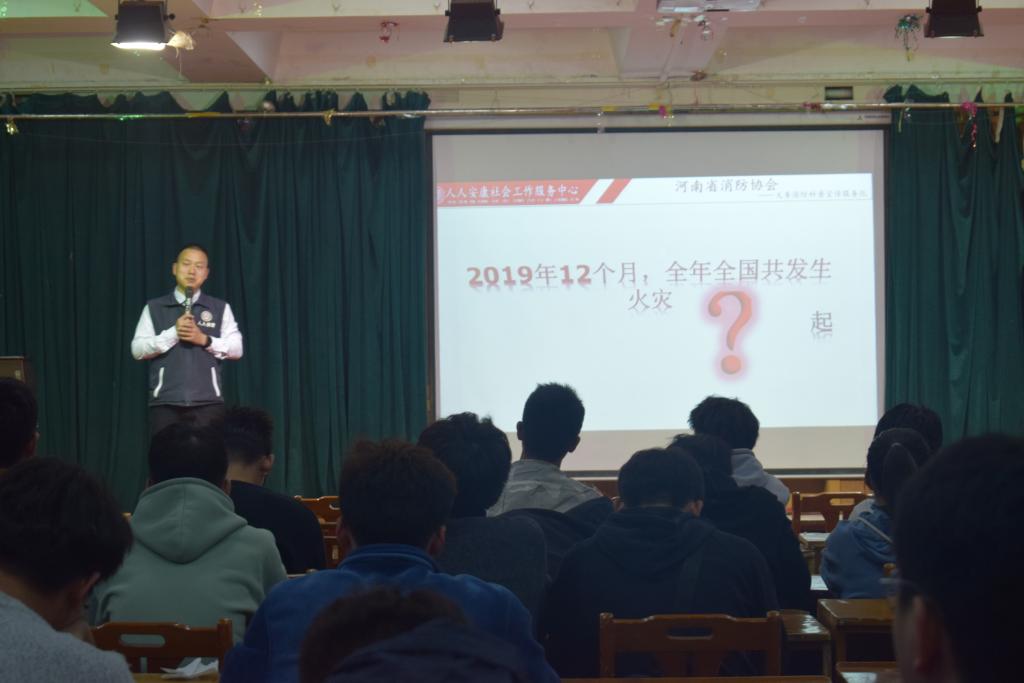 为全力打造平安校园,坚决遏制季节交替时期火灾高发势头,进一步提高学校学生的消防安全意识和自防自救能力,2020年11月5日,太阳集团tyc234cc邀请河南省消防协会讲师对各班班长、生活委员、各寝室宿舍长进行了消防安全知识培训讲座。