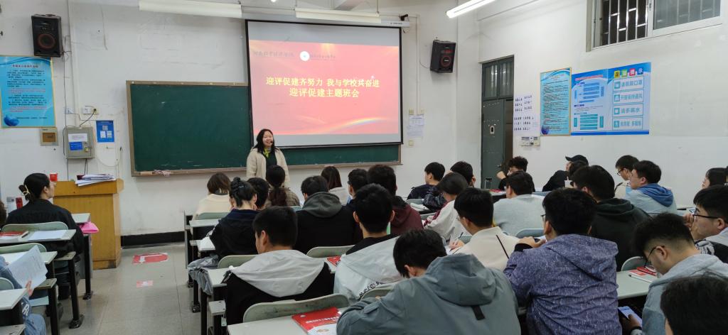 学院先后组织召开了学生会干部、班委、全班学生迎评工作动员会及班会,院党委副书记党美珠、团委副书记黄润芸、各辅导员老师,深入学生干部群体、各班全体同学中,为学生们讲解迎评促建知识相关知识,带领大家学习知识手册,让广大学生充分认识评估的重要意义,进一步明确合格评估的目标、任务,树立“校荣我荣”的强烈意识;号召学生干部起好模范带头作用,党员、团员干部要亮明身份、做出表率,树立大局意识,强化责任意识,加强日常自我管理,提高学生文明素养,促进优良院风学风氛围养成。