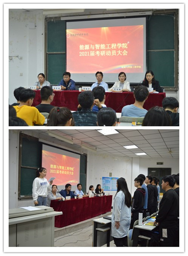 会议伊始,能源动力工程教研室主任张品博士强调考研是一次机遇,考研可以开拓我们的眼界;并介绍了往年部分院校研究生初试和复试的相关情况,为同学们提供了宝贵的建议。接着,机械工程教研室蒋爱德老师建议同学们尽早做好考研的准备,保持良好的心态,正确选择专业与专业课程,树立远大理想,端正学习态度,用恒心与信心积极面对考研。最后,隋继学院长做了动员讲话,隋院长表达了一直以来对同学们的殷切期待,围绕“专业课怎么学”、“如何最好大学规划”以及“为什么要考研”三个问题,再次为同学们加油鼓劲。勉励同学们既然选择了远方,便只顾风雨兼程。最后,党美珠副书记表示,学院将为同学们做好各项考研保障工作,努力为考研学子提供优质的、全方位的服务,再次勉励我院学子以时不我待只争朝夕的精神面貌投入到学习中,并衷心祝愿同学们能够梦想成真。本次会议在以李嘉妮同学为代表的考研宣誓中圆满结束。