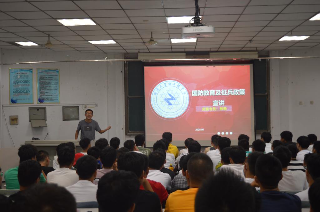 为激发广大适龄青年大学生参军报国的热情,积极响应祖国号召,携笔从戎,报效国家,太阳集团tyc234cc9月19日上午举行了国防教育及征兵政策宣讲,辅导员彭勃主讲,全体2020级新生参与了本次活动。