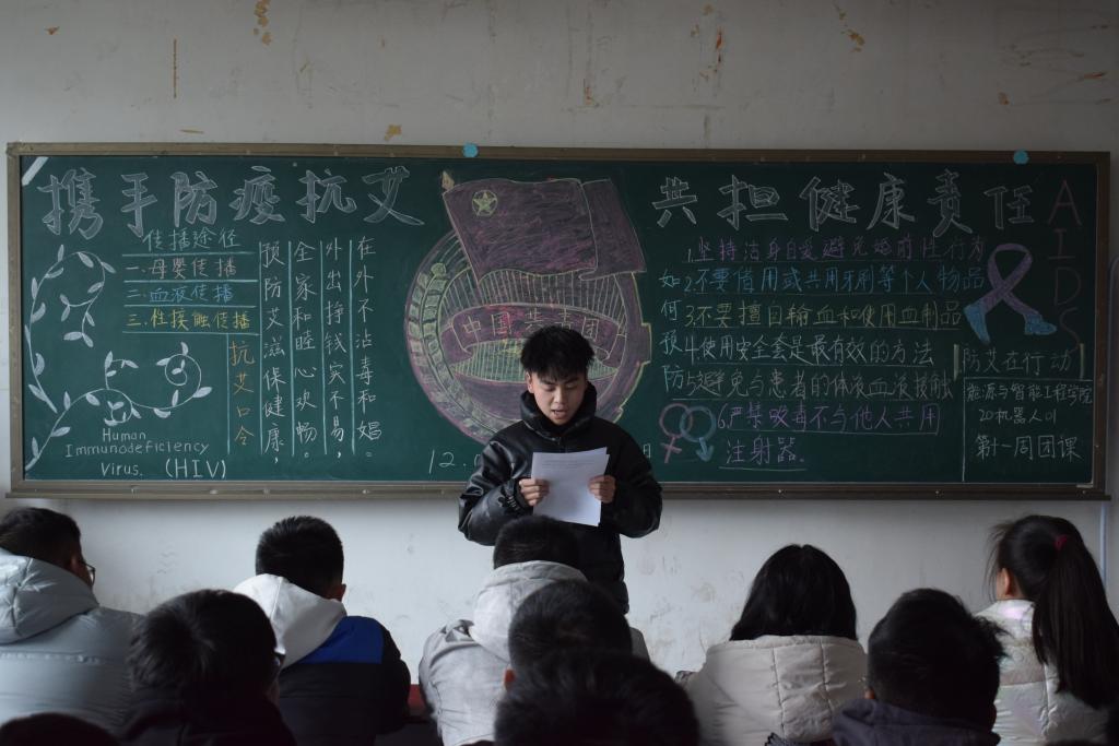 团课伊始,各班团支书向同学们从艾滋病的现状、中国和河南艾滋病的发展趋势,以及艾滋病的危害、基本症状、传播途径、预防措施等内容为在座的学生进行了讲解。同学们在台下认真专心的听取学习相关知识,并在互动环节积极踊跃的分享自己知道的有关艾滋病的故事,以此来告诫同学们洁身自好,远离艾滋。随后,20自动化01班的程嘉鑫同学进行了题为《勠力同心,抗疫抗艾滋》的演讲,来号召大家携手并肩,落实各项防控措施,以实际行动来遏制艾滋病流行。最后,各位团支书对此次做了总结,强调了团课中出现的问题,对同学们的积极表现也做出了表扬。本次团课也在同学们的积极配合下圆满结束。