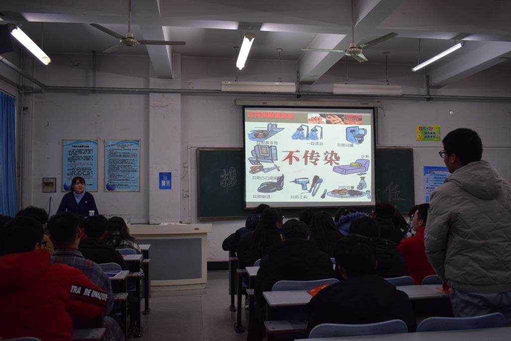 在“世界艾滋病日”,我院组织全体学生开展了“携手防疫抗艾,共担健康责任”主题团日活动,同学们认真专心的听取学习相关知识,并在互动环节积极踊跃的分享自己知道的有关艾滋病的故事,以此来告诫同学们洁身自好,远离艾滋。最后,学院邀请相关教师团队进行预防艾滋病专题讲座,向青年学生普及艾滋病相关预防事项。讲座现场学习气氛浓郁,同学们积极向专家提出各自关心的健康问题,认真学习良好的健康卫生习惯。此次多形式的宣传教育活动既实现了新冠肺炎疫情防控和艾滋病防控的有机结合,也达到了学生自我教育的目的,教育学生养成健康的生活习惯、洁身自好的行为规范。用实际行动来号召大家携手并肩,落实各项防控措施,以实际行动来遏制艾滋病流行。