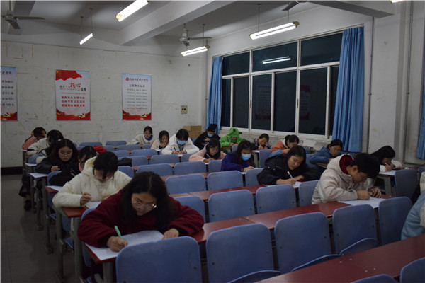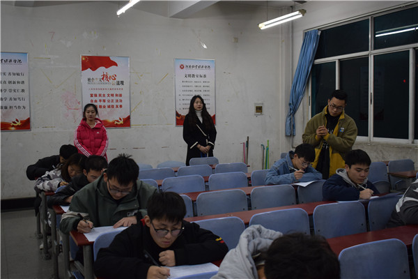 考试期间,考场井然有序,严肃安静,同学们认真思考,细致答题,展现了太阳集团tyc234cc学子应有的精神面貌。考试过程中辅导员老师、全体学生会各部门部长进行监考,密切关注考场动态,一个小时后考试圆满结束。
