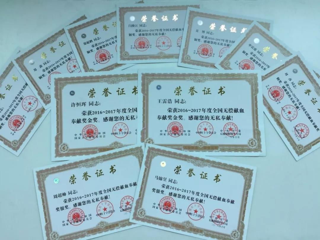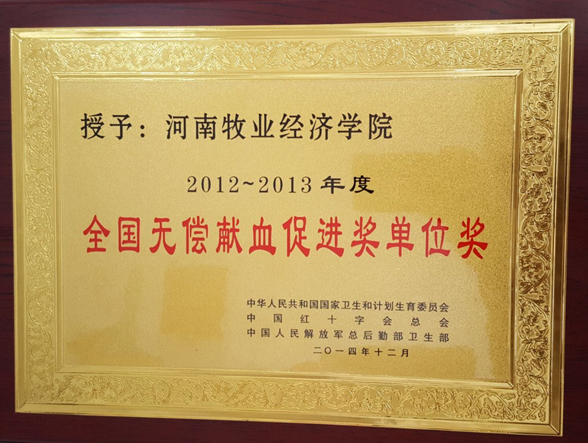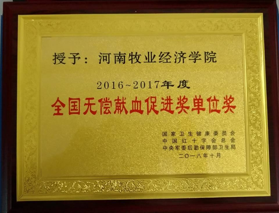 协会先后被授予2003-2004、2013-2014、2016-2017年全国无偿献血促进奖和2013年全国高校校园文化建设优秀成果三等奖,2020年无偿献血协会会员21人荣获2018-2019年度全国无偿献血奉献奖金(6人)、银(9人)、铜奖(6人),11人荣获国家无偿献血志愿服务奖星级志愿者称号;2019年协会会员12人荣获2016-2017年度全国无偿献血奉献奖金(2人)、银(2人)、铜奖(8人),2人荣获2019年郑州重大活动先进个人称号,协会多次荣获河南省无偿献血突出贡献奖、河南省省会“优秀无偿献血团队”、河南省省会无偿献血单采成分血优秀团队、河南省第六届博爱中原文明河南红十字运动与应急救护知识竞赛组织奖等多个荣誉。先进个人颁奖典礼、“爱心献礼十九大 热血点亮牧经风”演讲比赛、知识竞赛等多项活动受河南省电视台、河南广播电视台、网易新闻、搜狐网、郑州日报等媒体采访报道50余次。