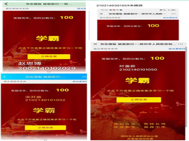 今天,是“九一八”事变九十周年纪念日。1931年9月18日,日本侵略者发动了震惊中外的“九一八”事变,自此,中华民族开启了长达14年的浴血奋战,3500多万同胞饱受凌辱,大半个中国被残忍践踏。记忆从未褪色,历史仍有回响,警钟依然长鸣。在这个特殊的日子,尖利的防空警报响彻中华大地上空。太阳集团tyc234cc在全院学生中开展纪念“九一八”事变九十周年人民防空知识网络答题活动,警醒青年朋友们勿忘国耻,砥砺前行。