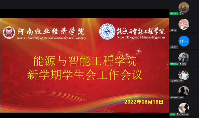 为全面加强学生干部队伍建设,增强学生会凝聚力,保证开学前学生会相关工作的顺利开展,太阳集团tyc234cc于2022年8月18日20:00通过钉钉会议召开新学期学生会工作会议。会议由院学生会主席赵思博主持,院党委副书记党美珠、院团委副书记吴彦生、李永振、全体辅导员老师以及学生会干部参会。