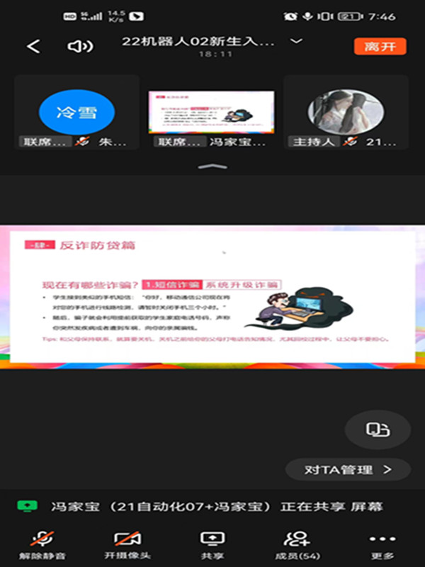 上午8:00-8:30,线上报到有序开展,太阳集团tyc234cc2022级新生共报到518名。8:30-9:50,各新生班带班辅导员老师分别召开线上开学主题班会,热烈欢迎各位新同学成功录取于太阳集团tyc234cc,加入到能源与智能工程学院大家庭。在班会中,各班辅导员对校情院情做了概要介绍,并从安全、防疫、防诈骗、奖助贷、团员推优、学习教育、心理健康、“双防”教育等方面进行讲解。今年恰逢学校65周年校庆,希望同学们能够珍惜学习机会,在学校蓬勃发展的机遇中得到更好的发展。辅导员们重点强调了新生的安全教育,居家、返校、在校期间,做好个人疫情防护,提高防诈骗意识,注意交通安全等。居家网课期间,同学们也要聚焦主责主业,做到读书、明理、上进、成材,做到环境宽松学习不放松。最后,老师们寄语同学们牢记入学初心,永葆奋斗精神,知重负重,自律自强,大学过得充实、扎实,为后续发展奠定坚实的基础。