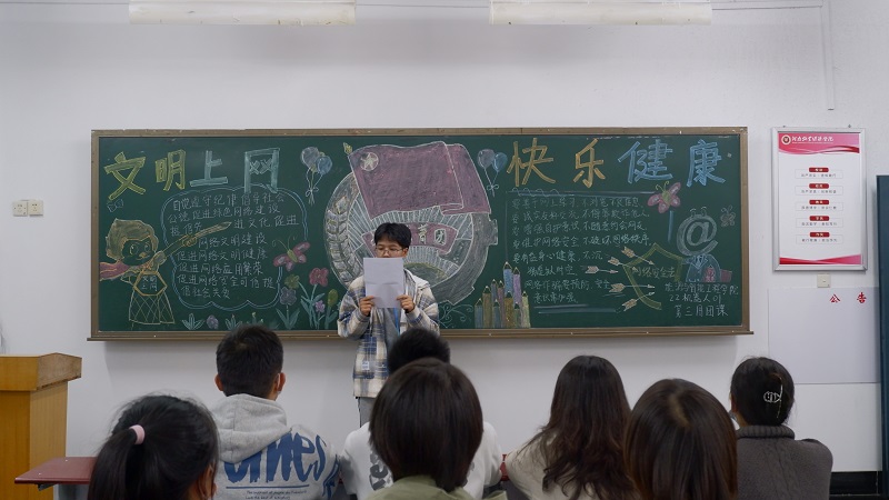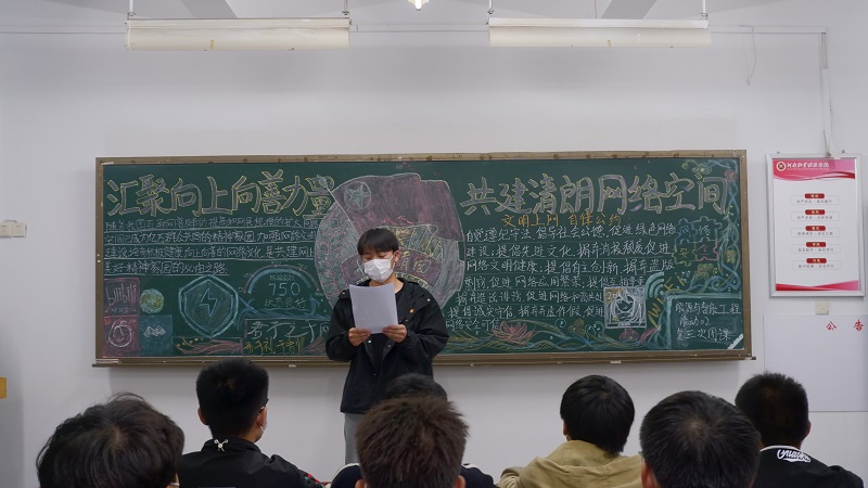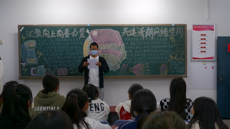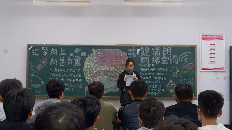 团课伊始,各班团支书向同学们介绍网络安全知识,引导学生文明上网、健康上网,共同营造清朗网络空间,养成文明上网的好习惯。随后,同学们就身边的网络安全隐患展开讨论演讲,积极发言。同学们纷纷表示会充分正确利用网络资源,增强网络自护意识,共同营造安全、健康、文明的网络环境,把主要精力放到努力学习上去,会不断提升明辨是非、服务社会的本领,努力成长为可堪大用、能担重任的栋梁之才。最后各班团支书提醒同学们网络不是法外之地,在使用网络时,应该遵守法律道德的底线,不断学习网络安全知识,树立法律意识,坚持依法上网。