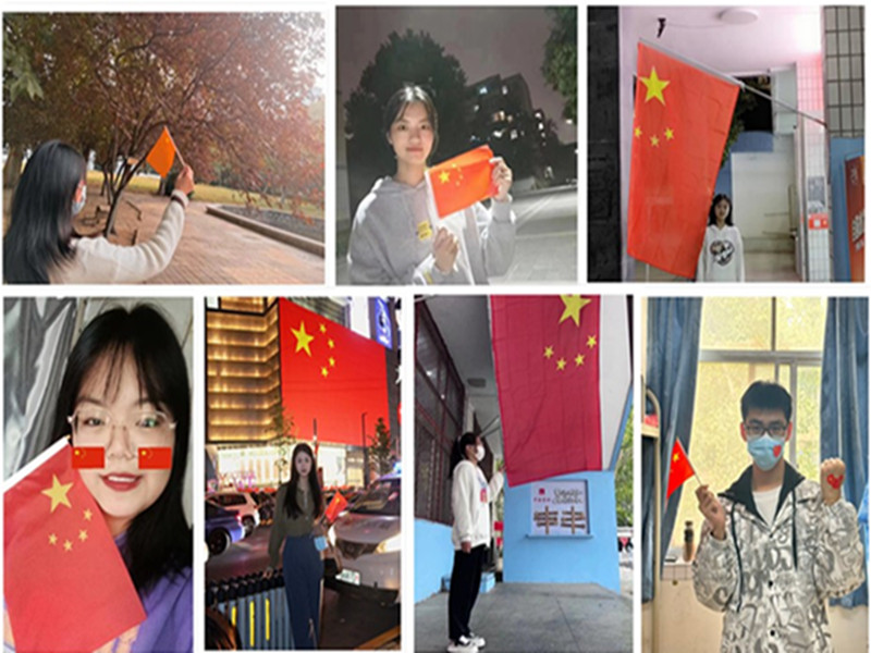 活动一经发出,全体同学积极响应,纷纷晒出自己在各个地方、各种场景与国旗的合影。即便不能出校园,我们也能拿着小红旗在校园的各个地方合影,每一张照片都代表了我院学子对祖国的热切祝福。