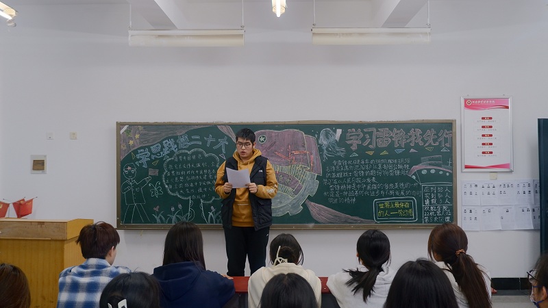团课伊始,各班团支书首先领学了习近平总书记:深刻把握雷锋精神的时代内涵,让雷锋精神在新时代绽放更加璀璨的光芒的重要指示。介绍了雷锋精神的来历,并对雷锋精神进行讲解,雷锋精神实质和核心是全心全意为人民服务,为了人民的事业无私奉献,周总理把雷锋精神全面而精辟地概括为“爱憎分明的阶级立场、言行一致的革命精神、公而忘私的共产主义风格、奋不顾身的无产阶级斗志”。接着,各班团支书组织各班学雷锋优秀同学发言,分享雷锋月期间的一系列学雷锋活动。最后,各班团支书积极引导广大青年学生认真学习雷锋热爱党、热爱国家、热爱社会主义的崇高理想和坚定信念;服务人民、助人为乐的奉献精神;干一行爱一行、专一行精一行的敬业精神;锐意进取、自强不息的创新精神;艰苦奋斗、勤俭节约的创业精神。