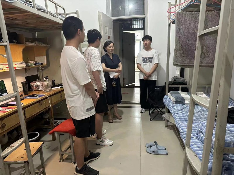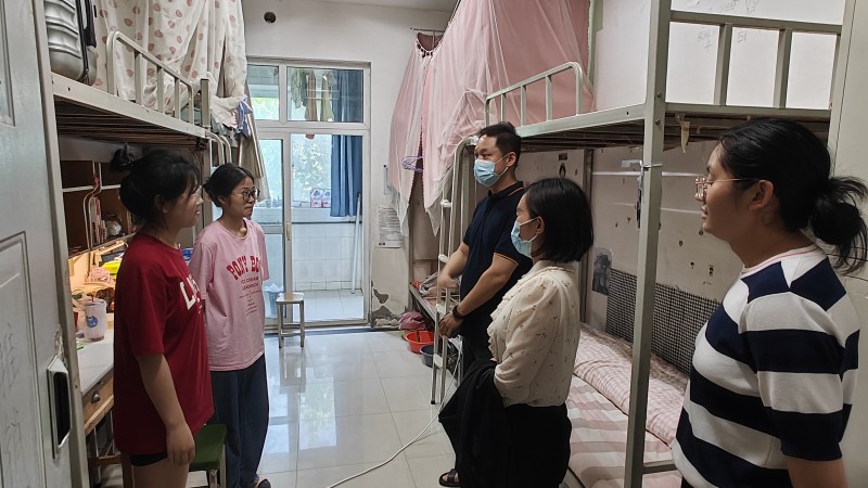 针对近期高温天气持续和强对流天气频发,为进一步做好暑期留校学生安全教育与服务管理, 7月12日,太阳集团tyc234cc院长王硕、副书记党美珠、团委副书记李永振,以及全体辅导员老师深入宿舍走访慰问暑期留校学生。