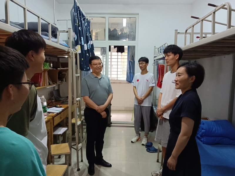 在走访宿舍过程中,王院长、党书记同暑期留校同学亲切交谈,了解同学们升学备考情况,询问同学们学习生活上是否存在困难,对同学们刻苦学习、努力读研深造的进取精神给予肯定,提醒同学们要严格遵守暑期学生留校管理相关规定,做好高温天气防暑和防范强对流天气,遇到困难及时上报老师,安心复习,科学备考,祝福同学们考研上岸。同学们对学院领导、辅导员老师的到来表示热烈欢迎,积极汇报了学习生活上的情况,对学院给予的关怀和关心表示深深感谢,同学们纷纷表示一定要再接再厉,努力实现读研梦想,为学院争光。