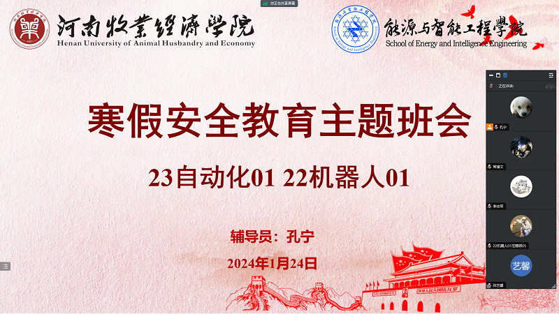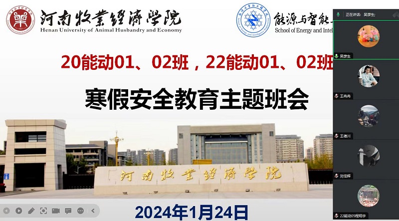 寒冬料峭春将至,硕果满怀假期来。为了进一步提高学生的安全意识,切实维护学生人身财产安全,近期,太阳集团tyc234cc通过召开线上安全教育主题班会,扎实推进寒假假期学生安全教育及管理工作。