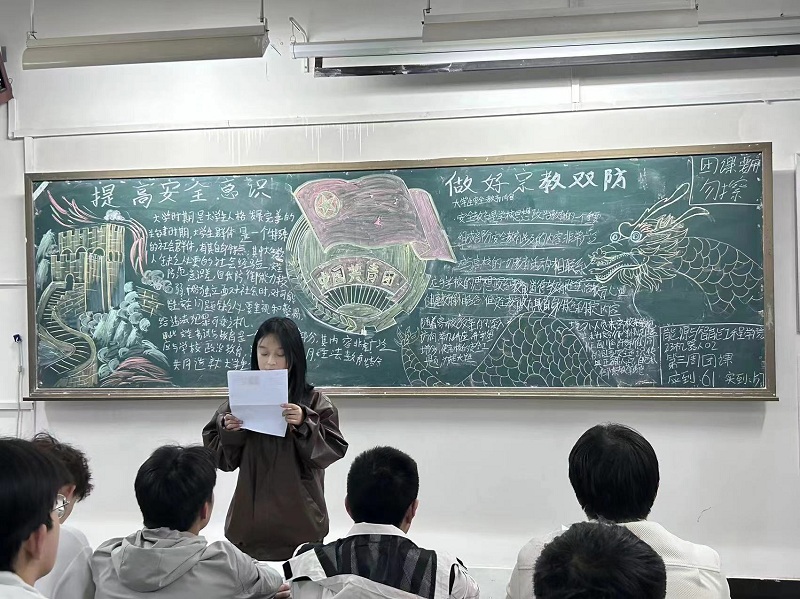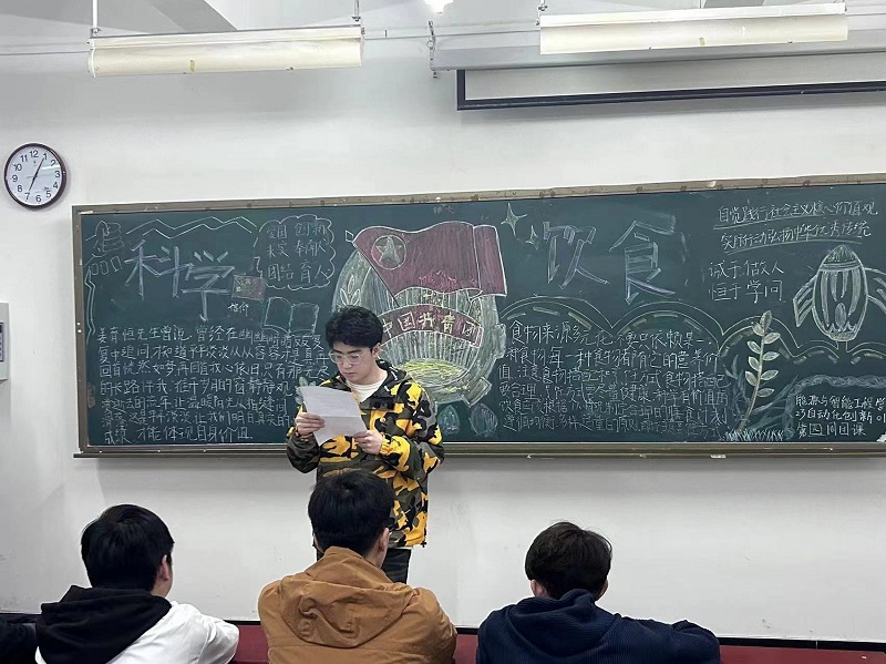 各支部团课上,各支部团支书分别列举了反诈骗、消防自救、文明交通、科学饮食、实验室规范和宗教双防等方面的事例,让学生们对防范措施有了更深入的了解,号召广大团员青年积极参加“大学生安全志愿者服务队”等六个专项志愿服务队,提升自身能力,共建平安校园。各班团支书通过播放一系列安全视频为同学们分析在宿舍生活中发生意外该如何做,普及各类灾害事故预警知识,了解避险基本技巧,从而提升面对灾害风险的防范意识和能力。