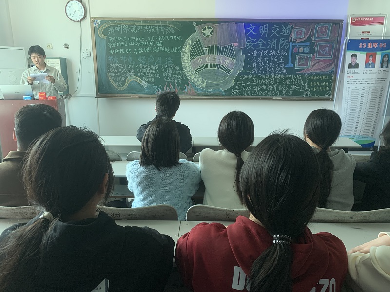 团课上,各班开展清明节主题活动,诵读英烈诗词、讲解清明节的由来、演讲英雄小故事、奏唱壮烈歌曲。引导广大团员青年对革命精神的时代价值展开思考。用先烈的英雄事迹感召同学们尊崇英雄、敬畏历史、勇于躬身奉献,同学们深受鼓舞,决心在今后的学习生活中,以更加严格的标准要求自己,脚踏实地、勇往直前,传承红色基因,担当时代责任。团课上,各班还针对清明假期对交通安全、节水节电以及清明小长假假期安全等工作进行了布置。