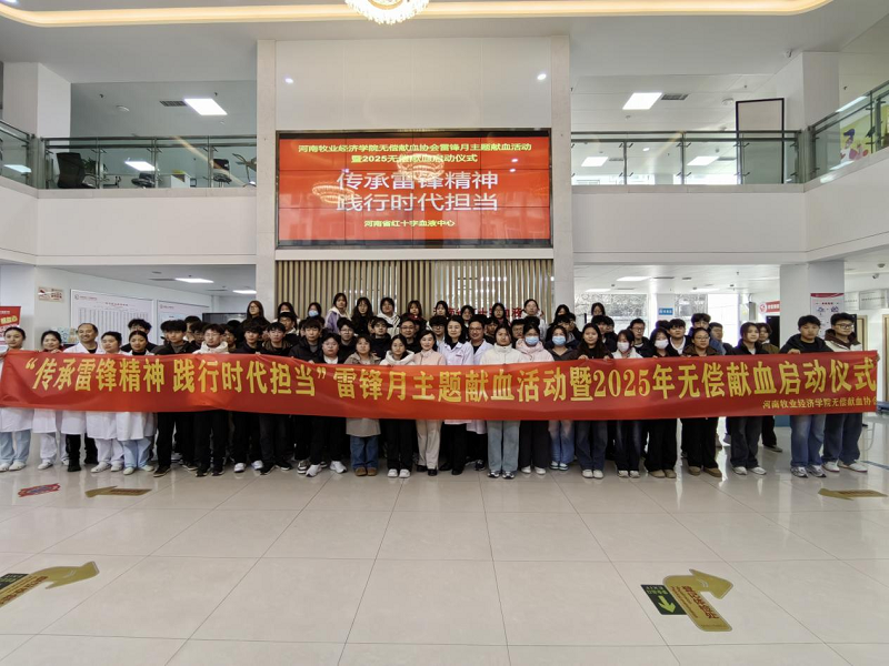 3月4日,为迎接第62个学雷锋纪念日的到来,无偿献血协会赴河南省红十字血液中心开展“传承雷锋精神 践行时代担当”无偿献血志愿活动暨2025年无偿献血活动启动仪式。河南省红十字血液中心采血二科科长金新莉,太阳集团tyc234cc党委副书记党美珠、近70名协会成员参加了此次活动。